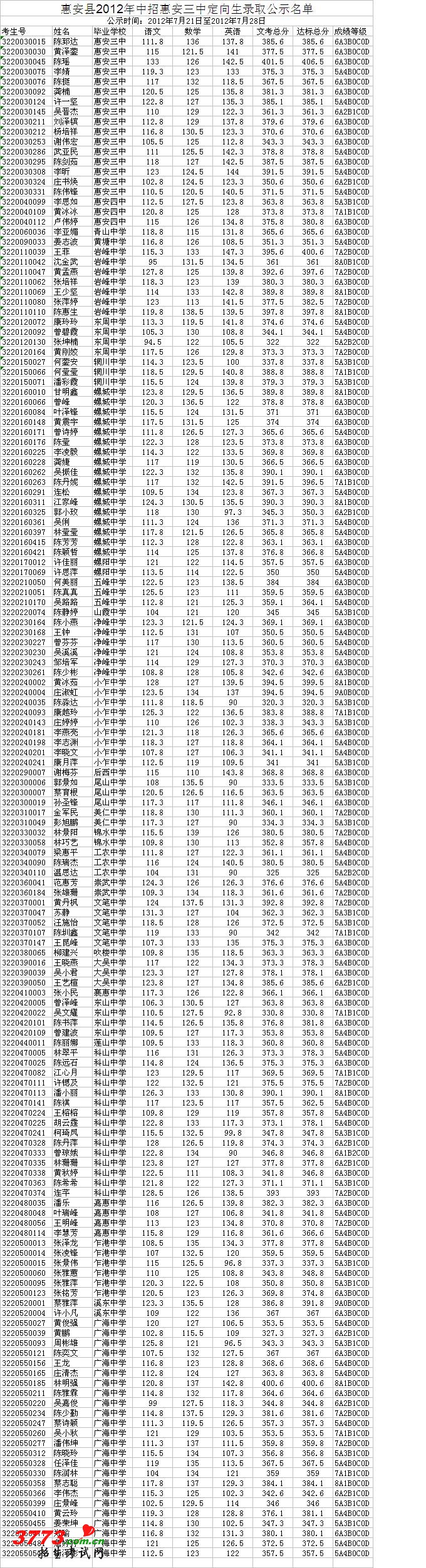 [图文]2012年泉州惠安三中中招定向生录取公示名单