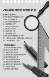 经过市教委的审批和规范,华东师范大学附属第二中学、复旦大学附属中学、上海交通大学附属中学、上海市民办尚德实验学校等21所高中成为国际课程试点学校,这些学校可以为本市高中阶段学生提供“中外融合”形式国际课程教育教学服务。