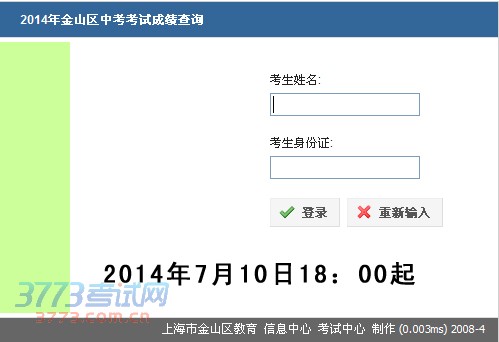 2014金山区中考成绩查询网站 http://czks.jsedu.sh.cn/cf2014/