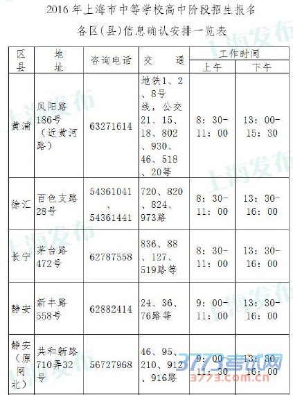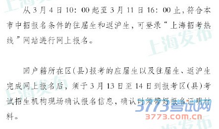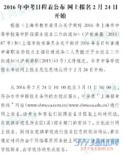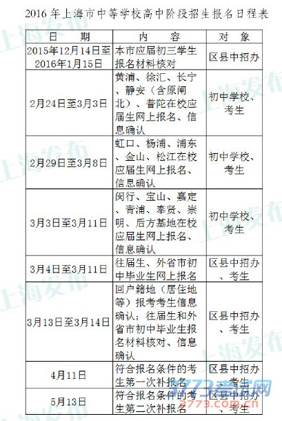 [组图]2016上海中考日程表公布 网上报名2月24日开始