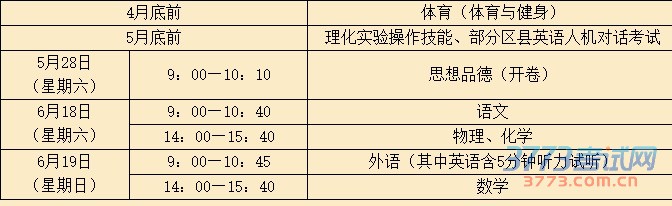 2016年上海市初中毕业统一学业考试时间安排见下表