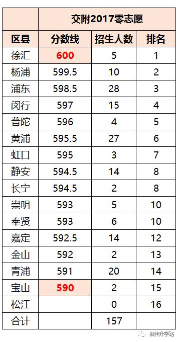 徐汇的同学, 可以参照下面这张定位表来进行定位(去年的招生数,每年变化不大)