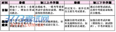 对于现在初二,成绩偏上想要参加自主招生考试的学生,新课程建议的是中考与自主招生考试两考”双赢”的备考方法。根据新课程的历年辅导经验,从这个暑假开始复习,正是备考的上佳时机。(见上表)