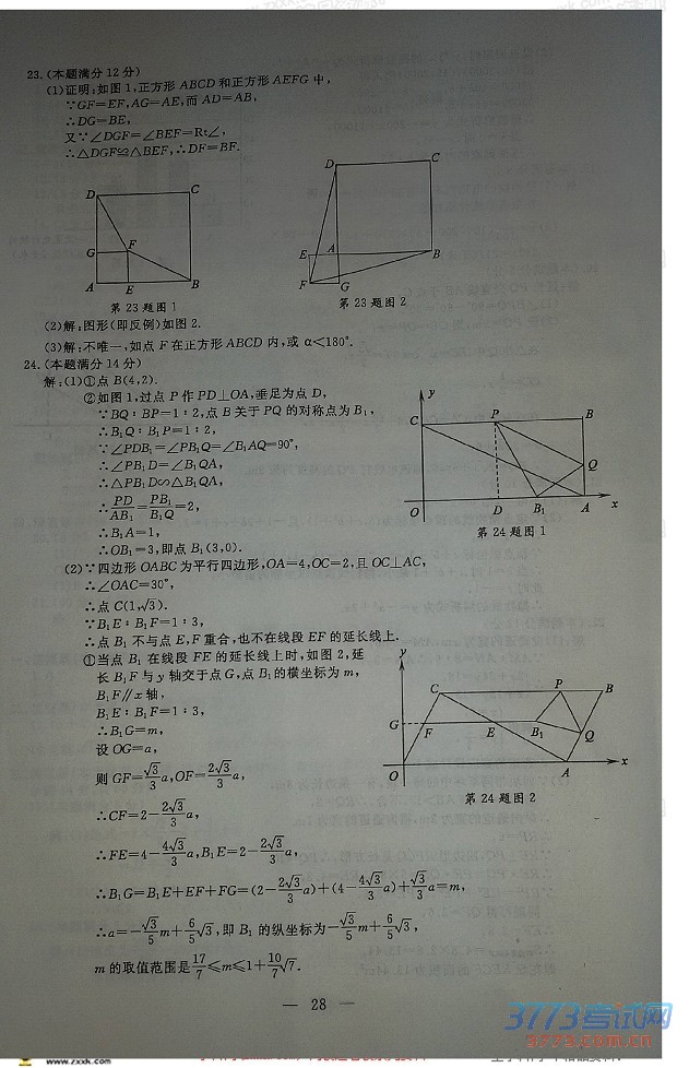 [组图]2015绍兴市中考数学试题及答案发布