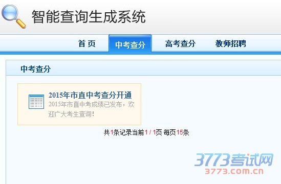 2015年市直中考查分开通 已发布,欢迎广大考生查询!