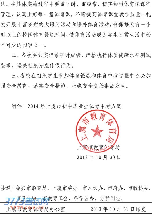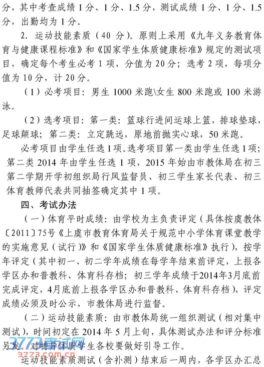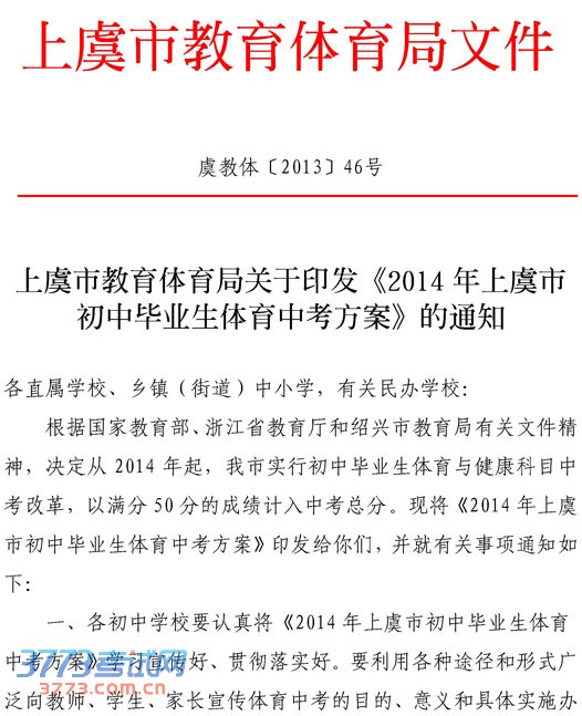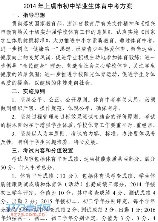 [组图]上虞市教育体育局2014上虞市体育中考方案