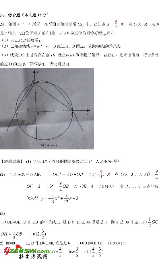2011湖南邵阳中考数学试题及答案