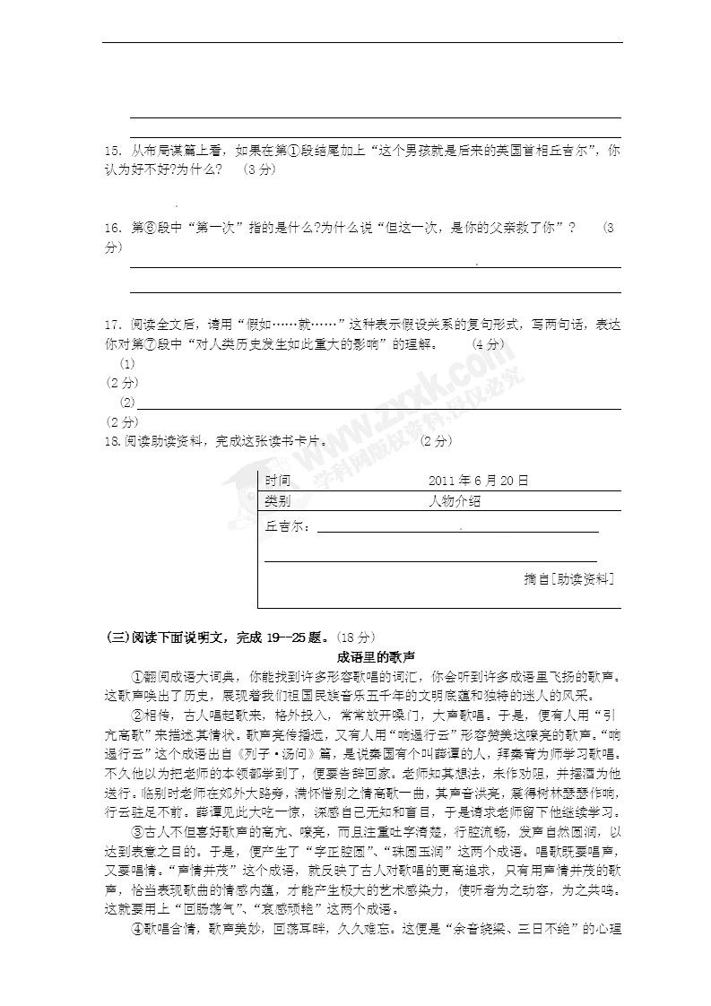 [组图]山西2011中考语文试题及答案