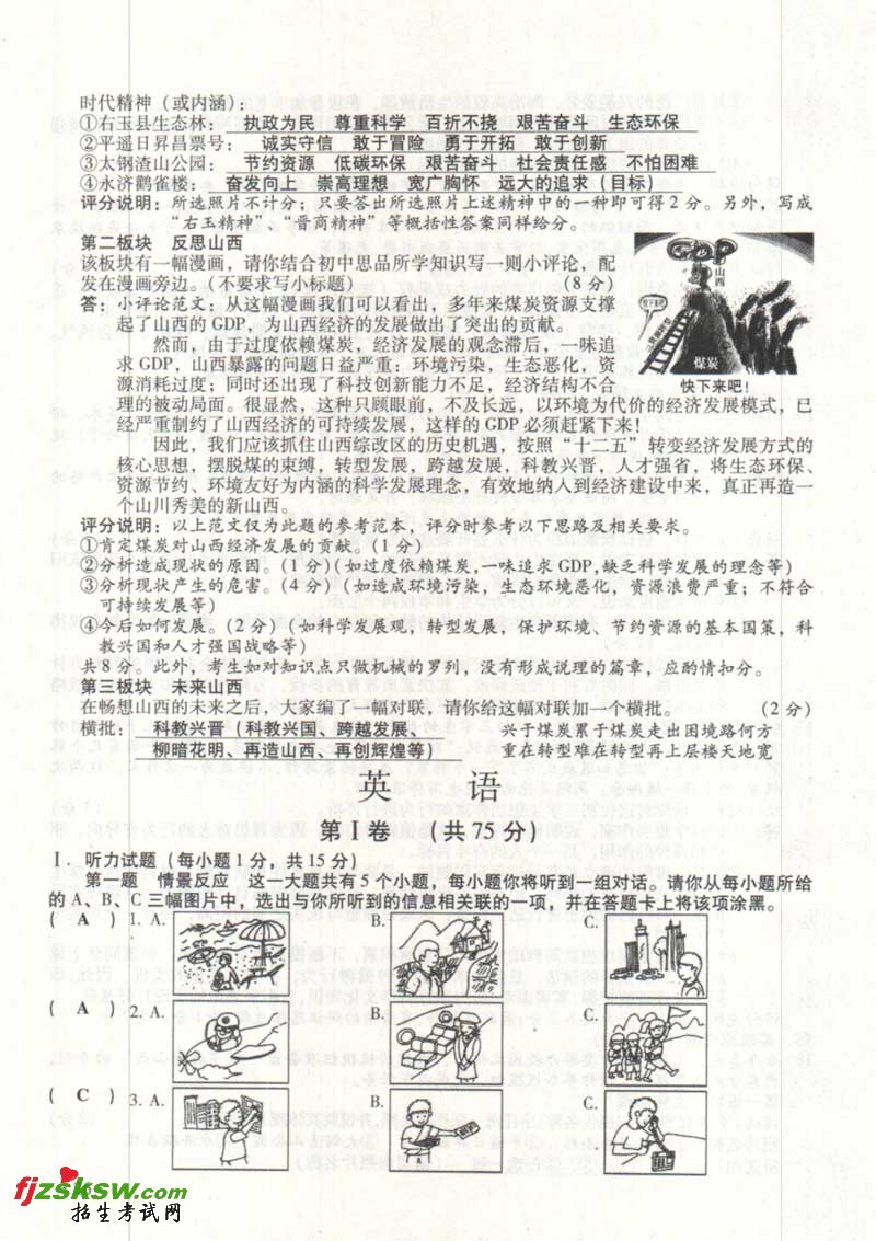 [组图]山西2011中考文综试题及答案
