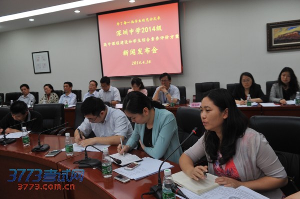 4月16日上午,深圳中学在先锋中学生国际圆桌会议室举行了《2014级高中课程建设和学生综合素养评价方案》发布会。有关专家、学者、领导、兄弟学校代表、家长代表参加了发布会。此方案的发布意味着深圳中学的课程改革进入了新的阶段。方案旨在让学生按需选学,学校按需施教,高校按需选材;学生的经历和能力可以换算学分,让学生更有价值地学习,更自由地学习,更高效地学习。