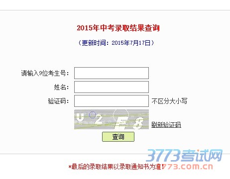 2015年中考录取结果查询