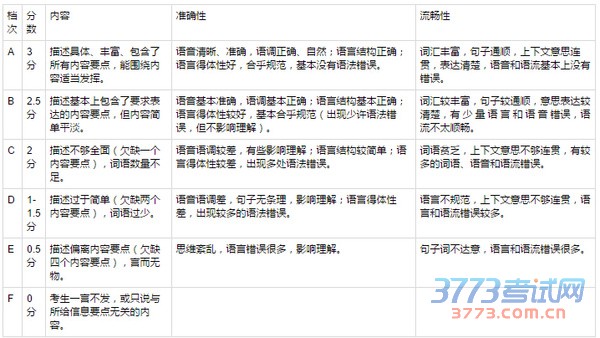 原则:采用整体评分法与要素评分法相结合。评分时从内容(要点)、语言准确性和流畅性三个方面确定考生答案所属档次。