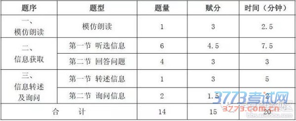 英语听说考试的题型、题量、分值和时间安排