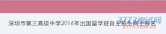 (一)网上报名:报名截止时间为2016年5月10日24:00。学生登陆深圳市第三高级中学官网上的“深圳市第三高级中学2016年出国留学班自主招生报名入口 >>>点击进入”,按要求填写完整信息、上传相关资料,确认无误后提交。