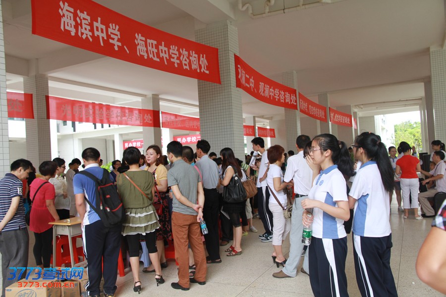 今年,我校继续面向全市招生1040名,让全市学生享受优质品牌教育资源,学生及家长的咨询热情高涨。几天来,学校的招生咨询热线几乎从未停过。参加此次招生咨询的不仅有来自宝安区、光明新区、龙华新区各街道的学生,南山、龙岗、福田、罗湖等区的许多家长和学生也纷纷慕名前来。早晨刚过7点30,就有部分家长携考生陆续来到咨询会现场。9:00许,校园内的咨询点人头攒动,场面火爆。不少家长携全家到访,现场召开家庭会议。中午12:00后仍有不少家长陆续前来咨询。一位来自市区的家长说,他们早就知道宝中今天开咨询会,因为担心路上堵车,一大早全家人就从市区往学校赶,就想带孩子来亲身感受下宝中这所名校。