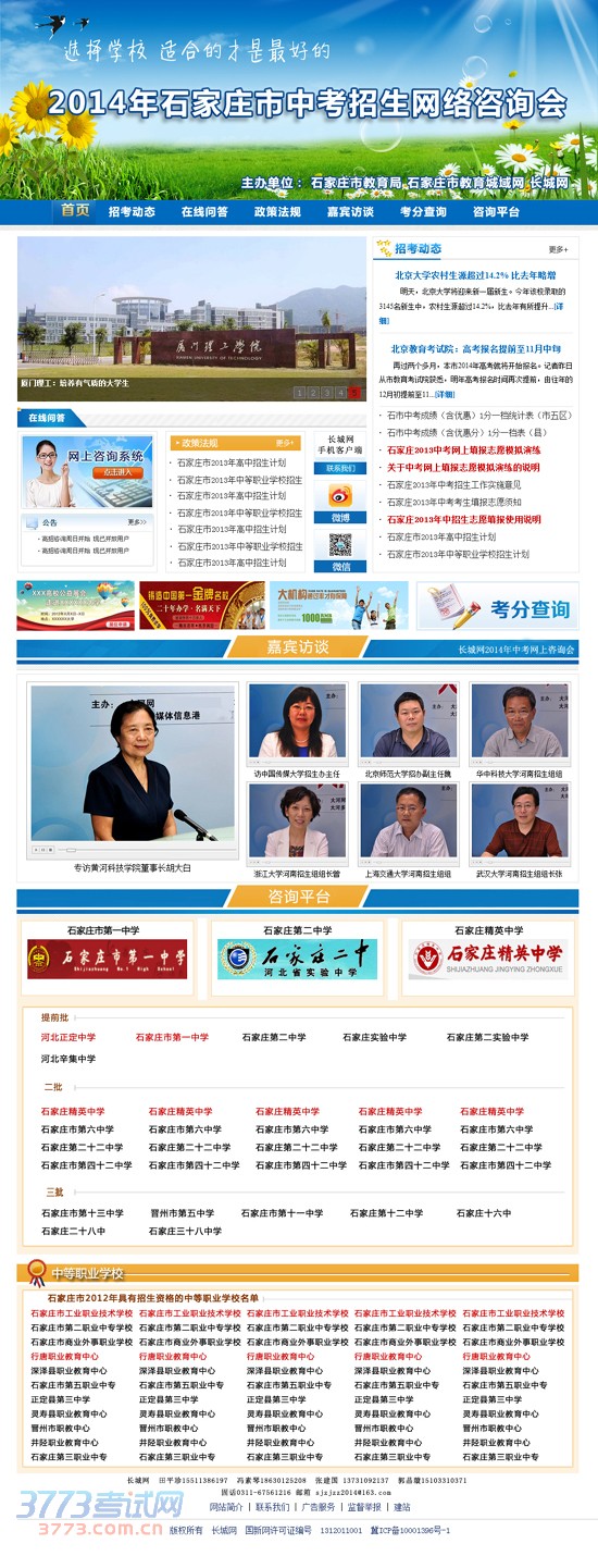2014年石家庄市中考招生网络咨询会专题页面效果图
