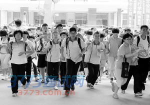 中考结束,考生们欢呼着跑出考场。本报记者张海强摄