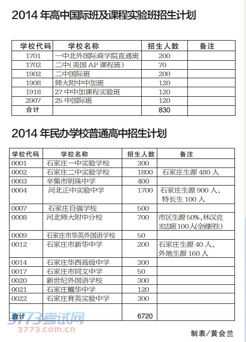 [图文]2014石家庄高中国际班及课程实验班招生计划