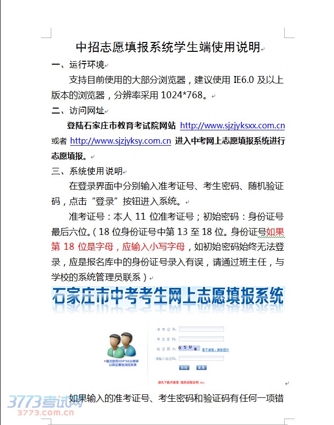 2014石家庄中考网上填报志愿系统使用说明