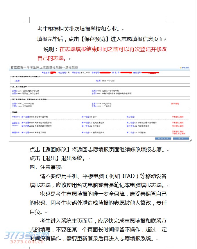 [组图]2014石家庄中考网上填报志愿系统使用说明