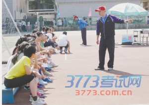 在考试当中考生不仅要注意技术动作的规范,对心理状态的调节也很重要。“从上午的考试看,大部分考生都能发挥出自己的正常状态,但也有个别考生因为心理紧张而发挥不理想。”李晓耕说,考生可跟着带队老师做做赛前热身准备,来打消心理上的压力