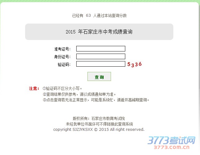 2015石家庄中考成绩查询直接入口  http://www.sjzjyksy.com.cn:8080/zkcj/