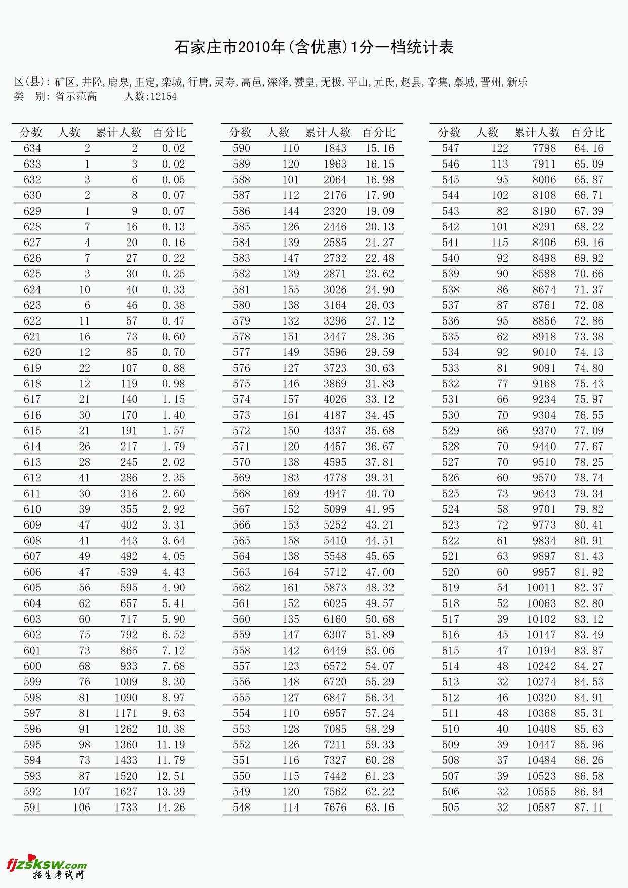 [图文]2010年石家庄中考成绩1分一档统计表(各县)