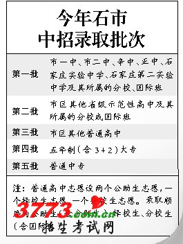 辛中、正中、石家庄实验中学、石家庄第二实验中学只招收各县(市)、矿区的示范性高中类考生