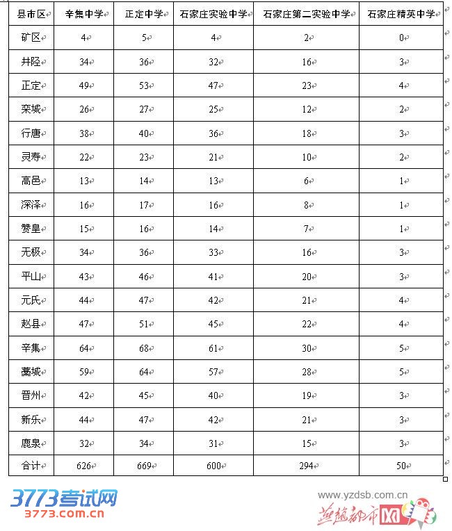 [图文]石家庄2013年驻县省示范性高中及精英中学分配生计划