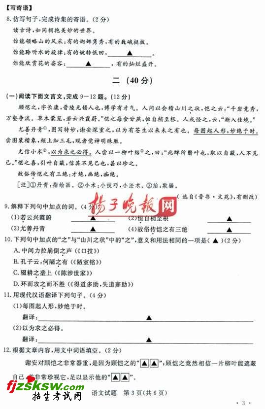 [组图]2010年南京市中考语文试题及答案
