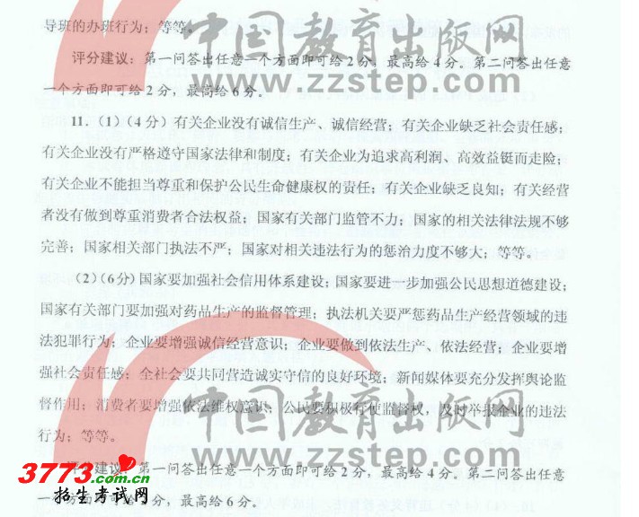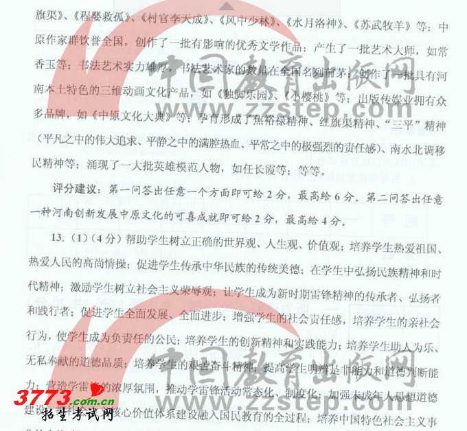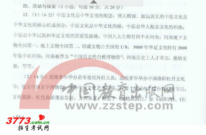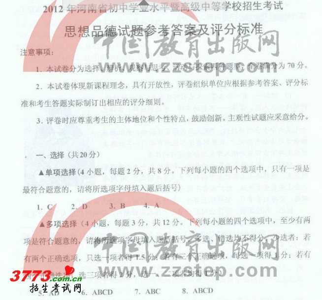 [组图]2012年河南省中招思想品德学试卷真题答案