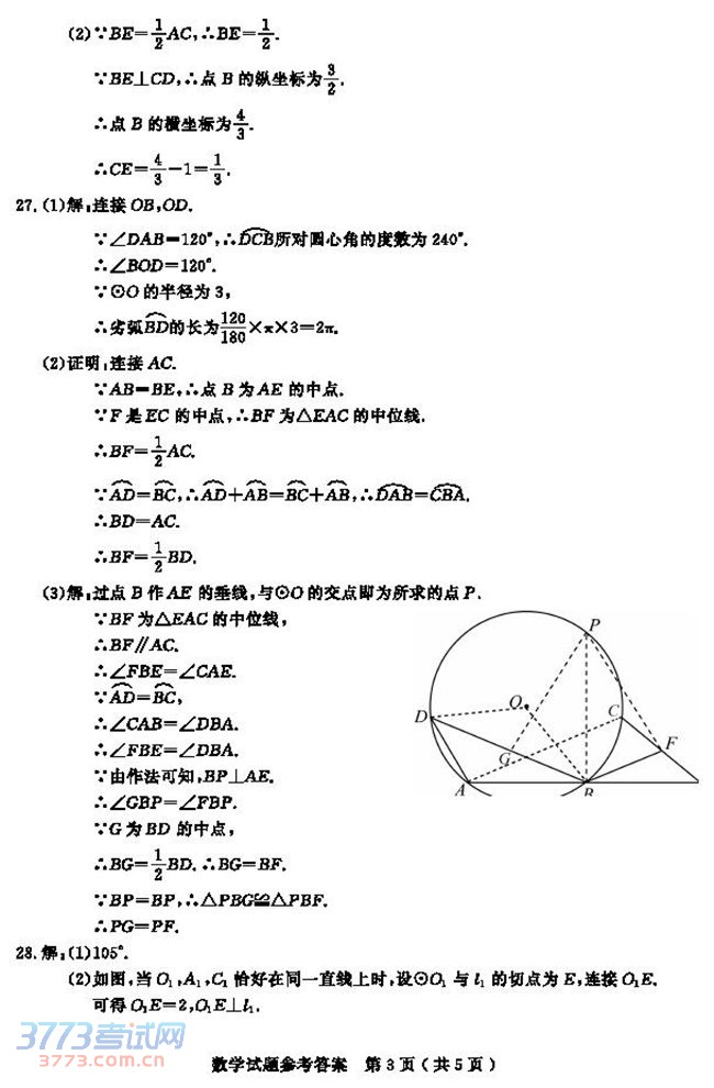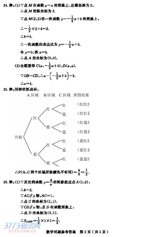 [组图]2014苏州中考数学试题及答案评分标准发布