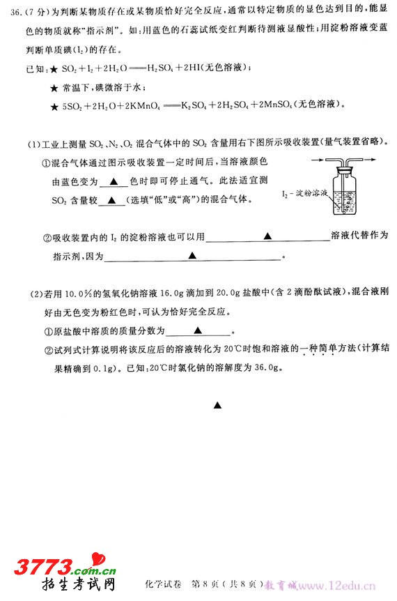 [组图]2012年苏州中考化学试卷答案及评分标准