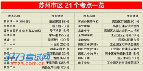 这个月的17日,一年一次的中考又将开始。今年全市参加中考的学生有54498人,其中苏州市区13315人(不含吴中区、相城区和吴江区)。全市共设考点182个、考场1908个,其中市区考点21个、考场458个。