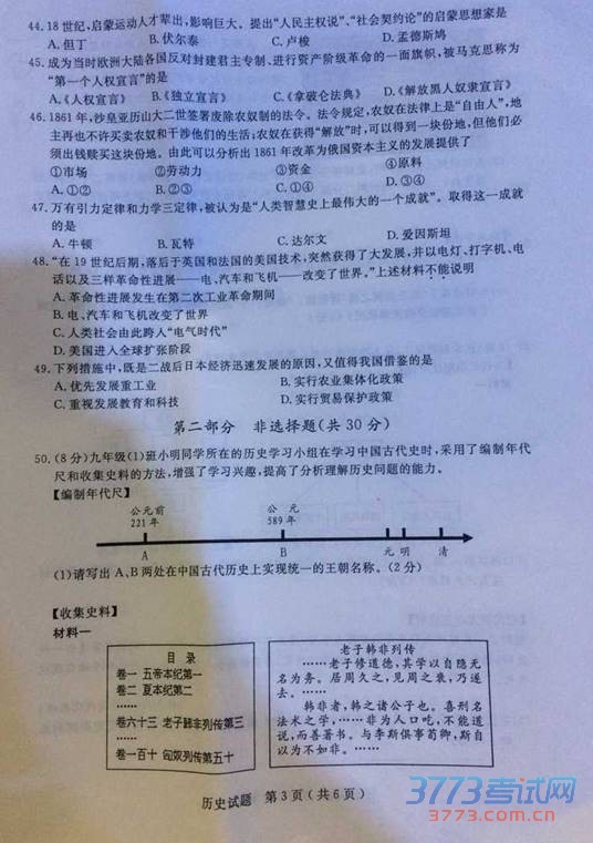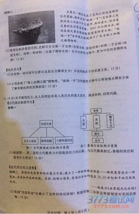 [组图]2015年泰州中考历史试题发布