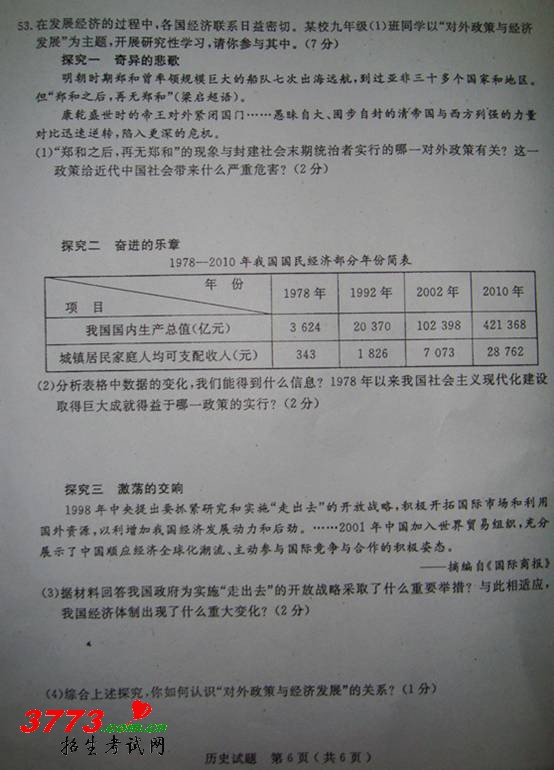 [组图]泰州市2012年中考历史试题答案及评分标准