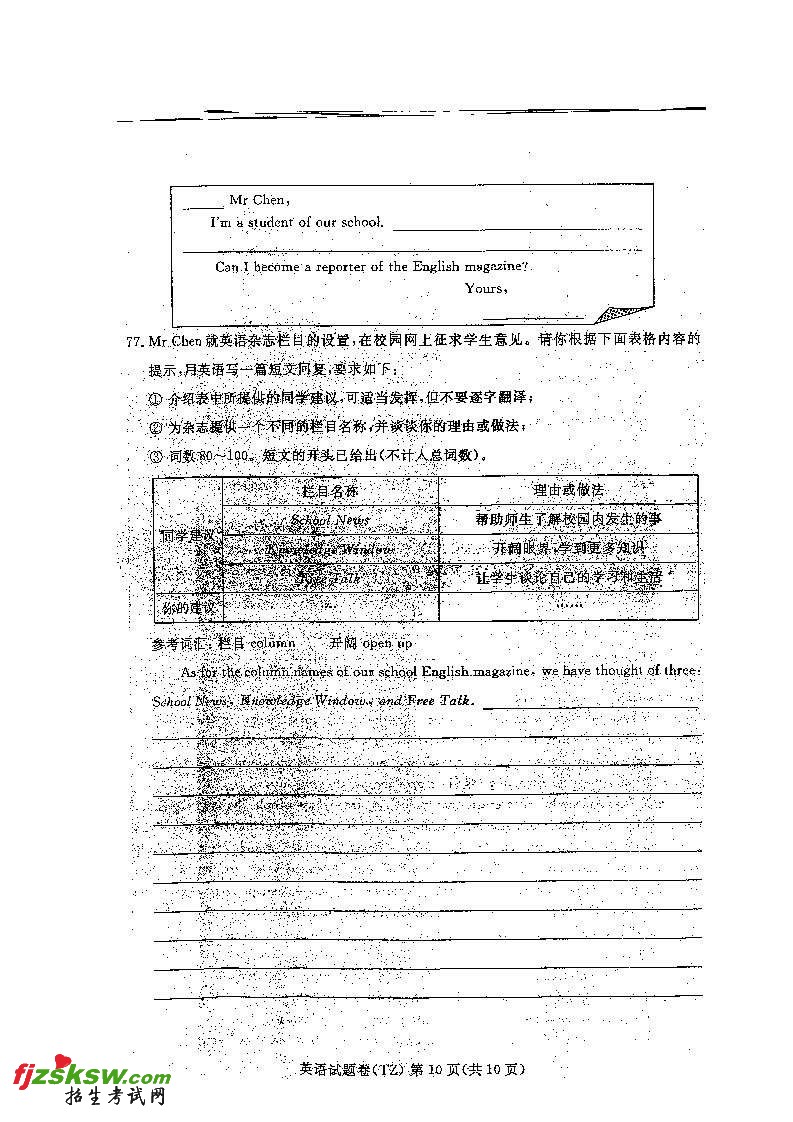 [组图]浙江台州2011中考英语试题及答案