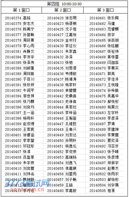 (具体时间见下表学生分组情况,请按时到指定窗口来我校领取)