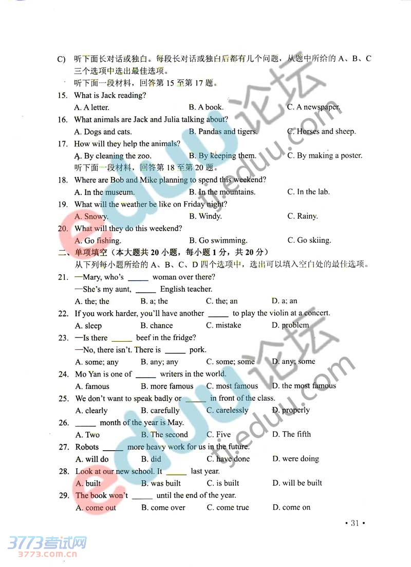 及时发布中考作文,中考试题,试题答案,试题点评,希望大家考出好成绩!