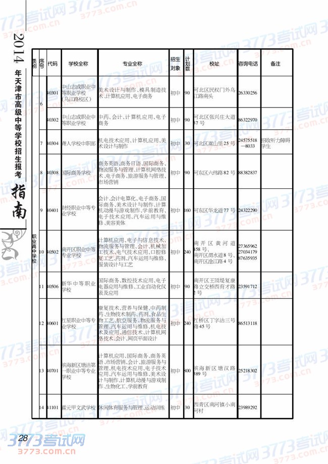 [组图]2014天津中考中招招生计划公布