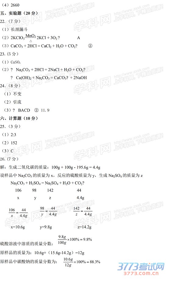2015年天津中考化学试题答案(图片版):