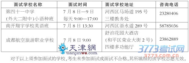 对于以上须参加面试的学校,考生未参加面试或面试不合格,其所填报的该学校志愿无效。