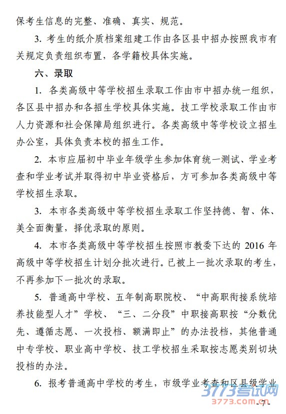 4.本市各类高级中等学校招生按照市教委下达的 2016 年