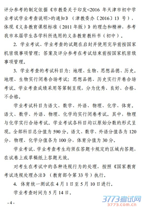 业考试学业考查说明>的通知》(津教委办〔2016〕13 号),