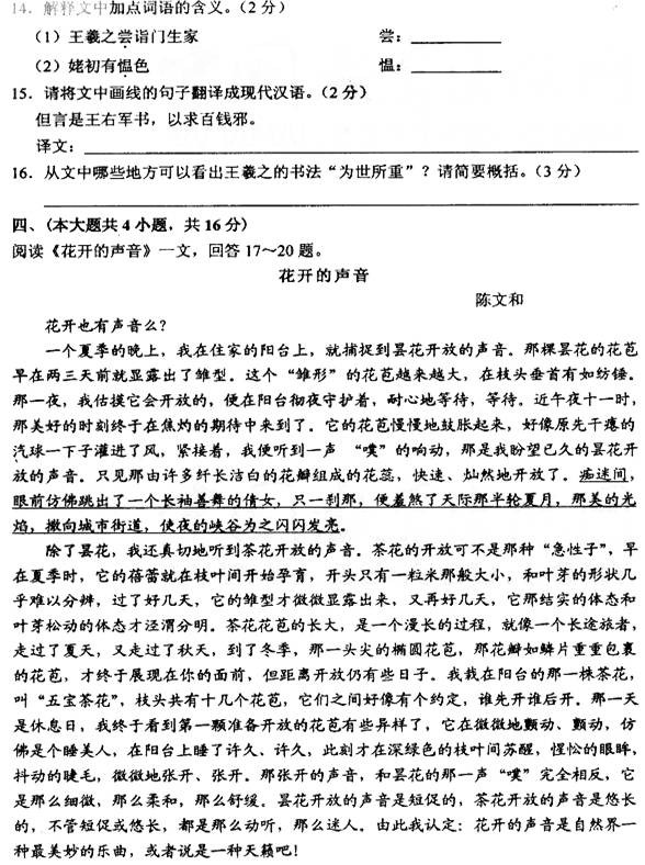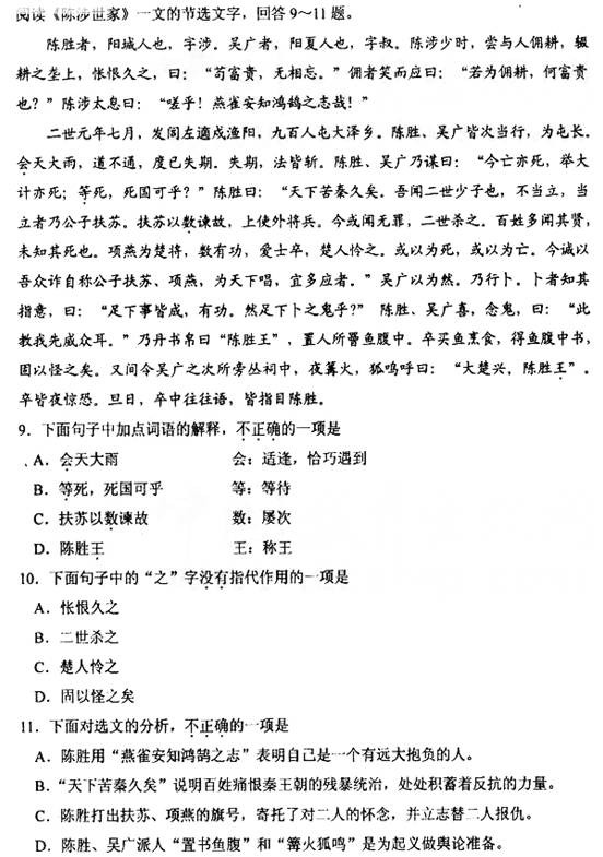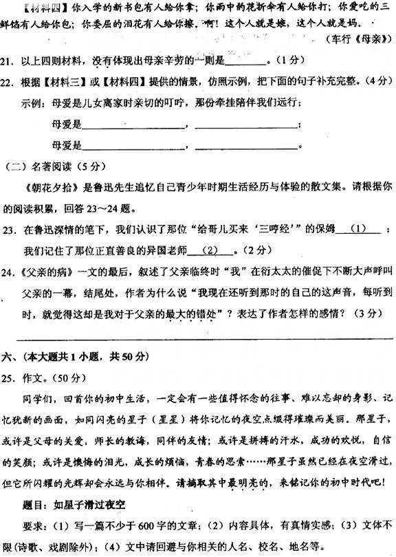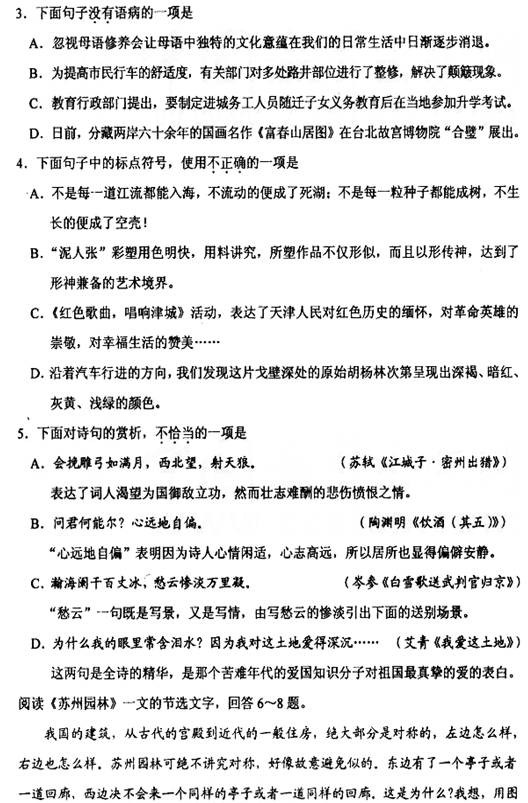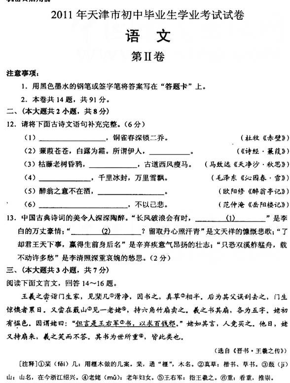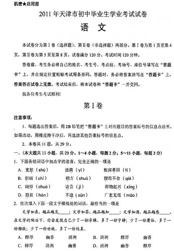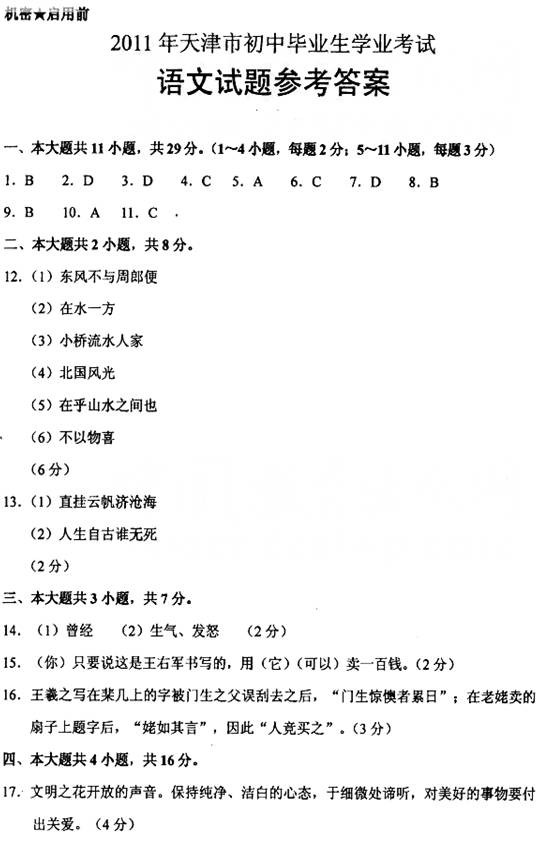 [组图]天津2011中考语文试题试卷及参考答案