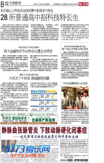 新报讯【记者 朱丹】昨天,市教委公布关于2013年在天津市部分普通高中学校招收科技特长生的通知,将在耀华中学、第五十五中学等28所学校共计招生176人。