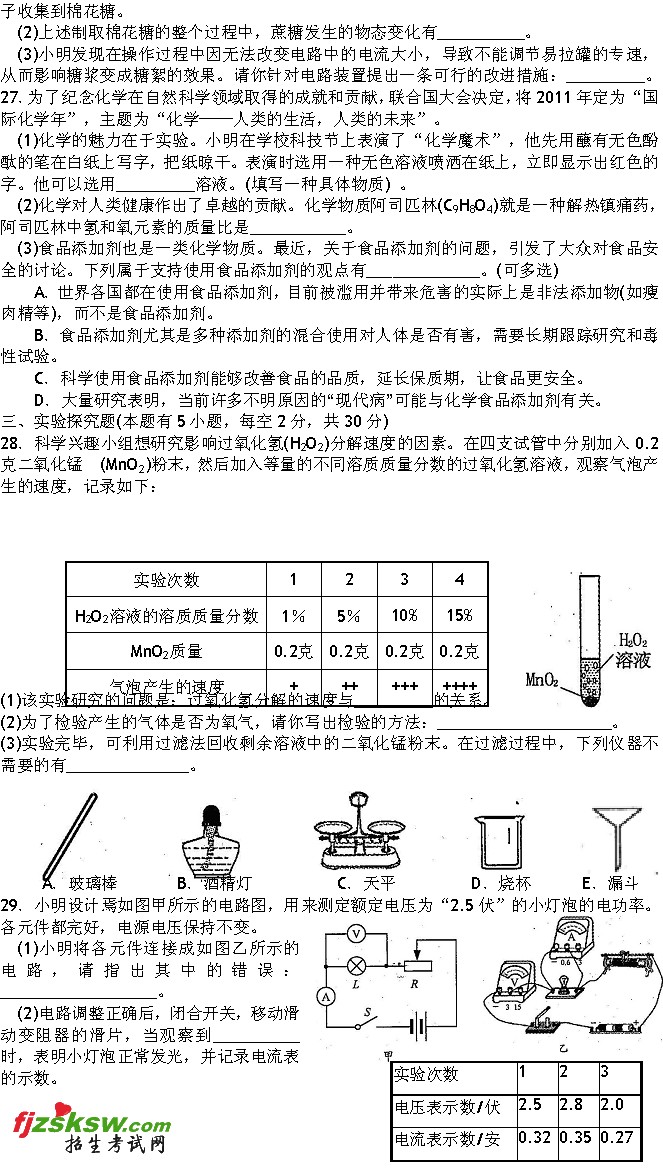 [组图]2011年温州中考物理试题及答案