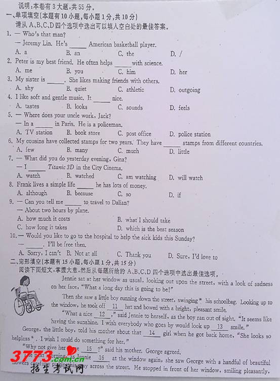 一、单项填空 本题有10个小题 每小题1分 共10分