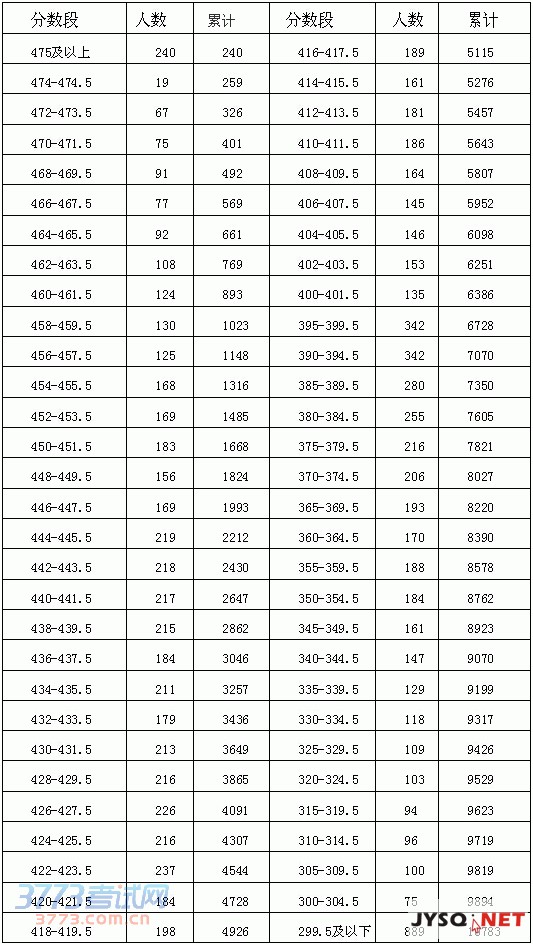 2014年江阴初中毕业升学考试分数段统计表