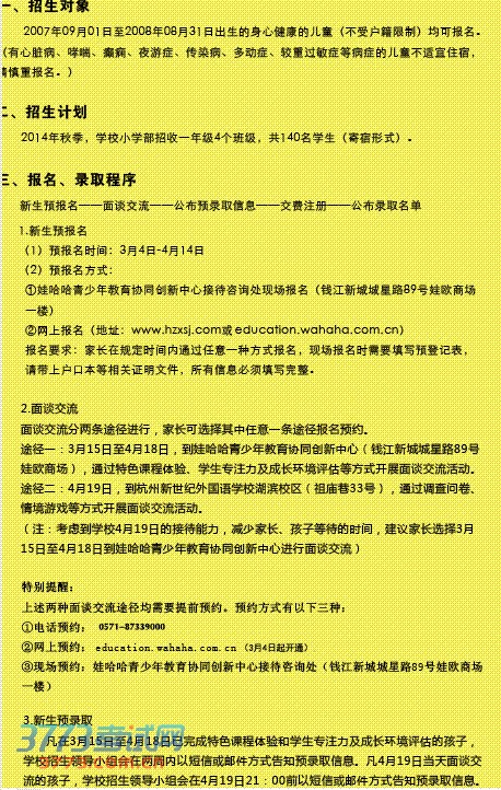 [组图]杭州新世纪外国语学校小学部2014招生简章
